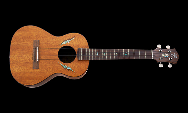 在2014年,aNueNue 帮 Kyas 客制设计琴,造型采用 Super Lani 琴款,独特的倾斜式设计,让持琴手感更佳,琴头为镂空造型古典琴头,并有有kyas的字体设计,搭配指板上的闪电造型指板点与音孔两侧的两道闪电。目前Kyas搭配使用的是aNueNue最新推出Wood Talk拾音器,请大家持续追踪Kays的精彩演出吧!