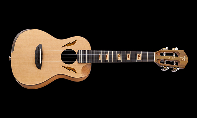 在2014年,aNueNue 帮 Kyas 客制设计琴,造型采用 Super Lani 琴款,独特的倾斜式设计,让持琴手感更佳,琴头为镂空造型古典琴头,并有有kyas的字体设计,搭配指板上的闪电造型指板点与音孔两侧的两道闪电。目前Kyas搭配使用的是aNueNue最新推出Wood Talk拾音器,请大家持续追踪Kays的精彩演出吧!